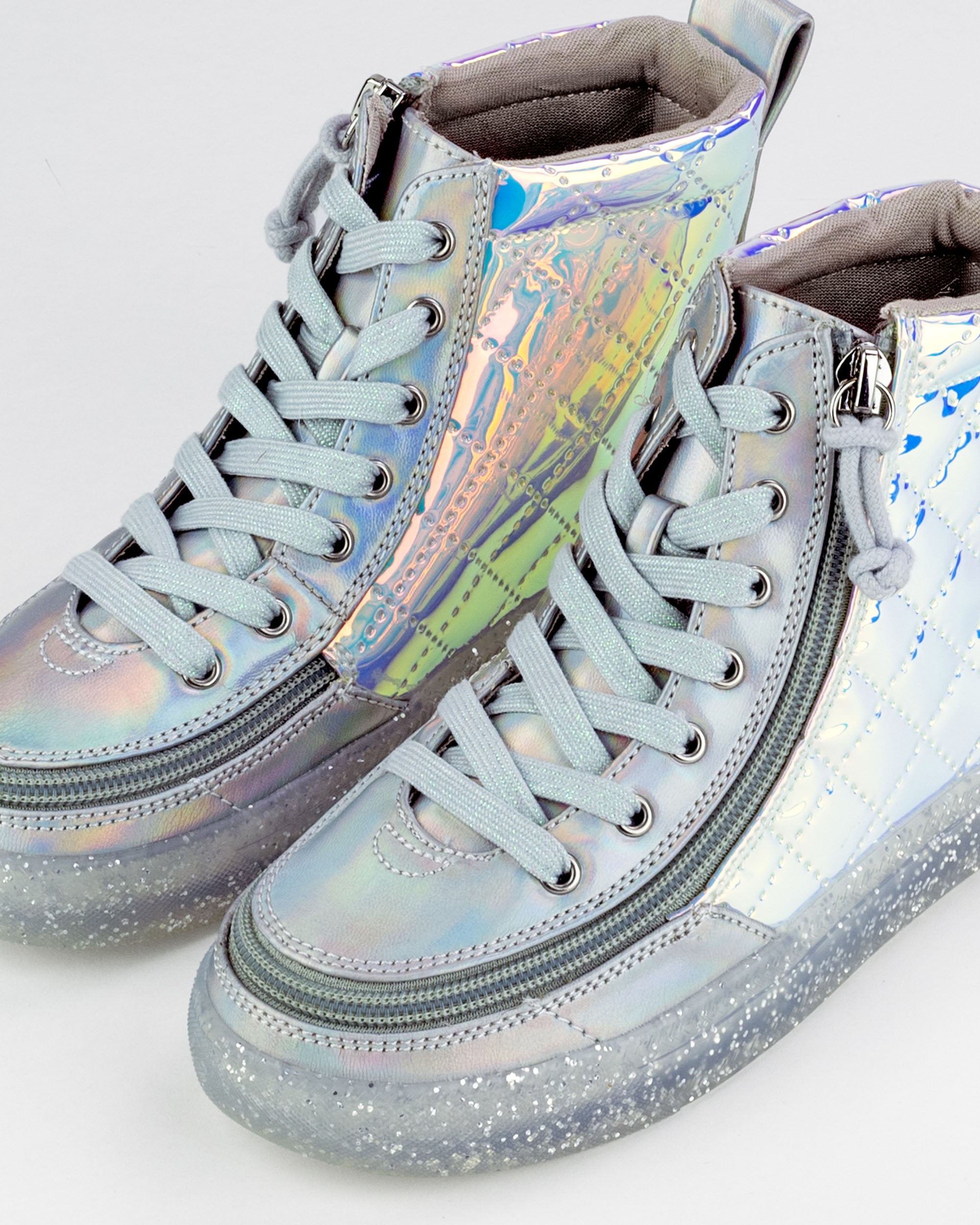 Step into a realm of shimmering style with these sparkling and iridescent High Tops from Billy Footwear. Designed for both fashion and function, these high tops have an easy-to-use zippered closure for effortless on and off, ensuring that you can effortlessly slip into the magic of Frozen at a moment's notice. The adjustable laces provide a customisable fit, allowing you to tailor your footwear experience to perfection. Whether you're exploring the wintry landscapes of your imagination or simply adding a touch of Frozen flair to your everyday style, these high-top shoes are the perfect blend of comfort and fantasy.