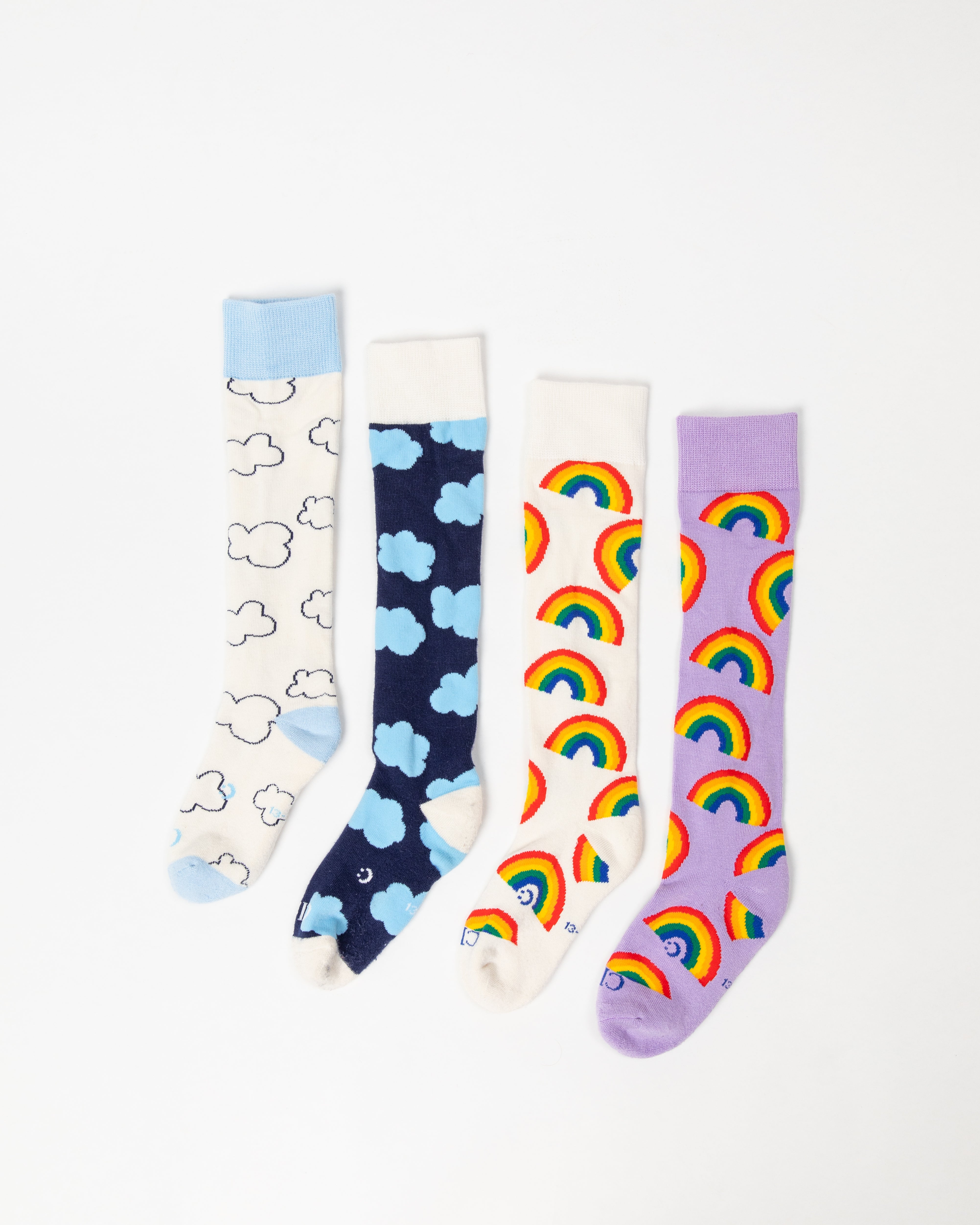Everyday Knee-High Seamless Feel Socks 4 Pack (Kids) - Clouds & Rainbows