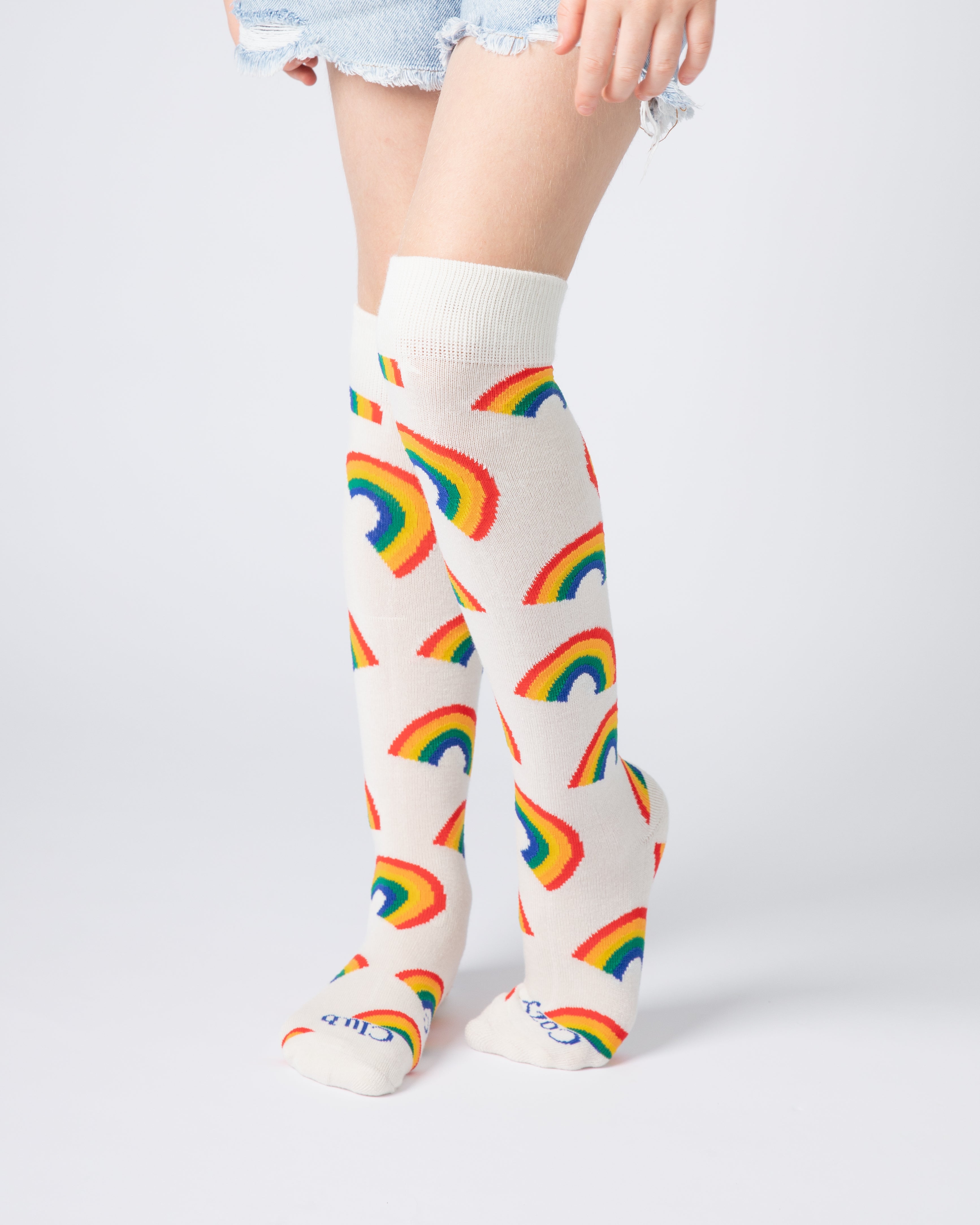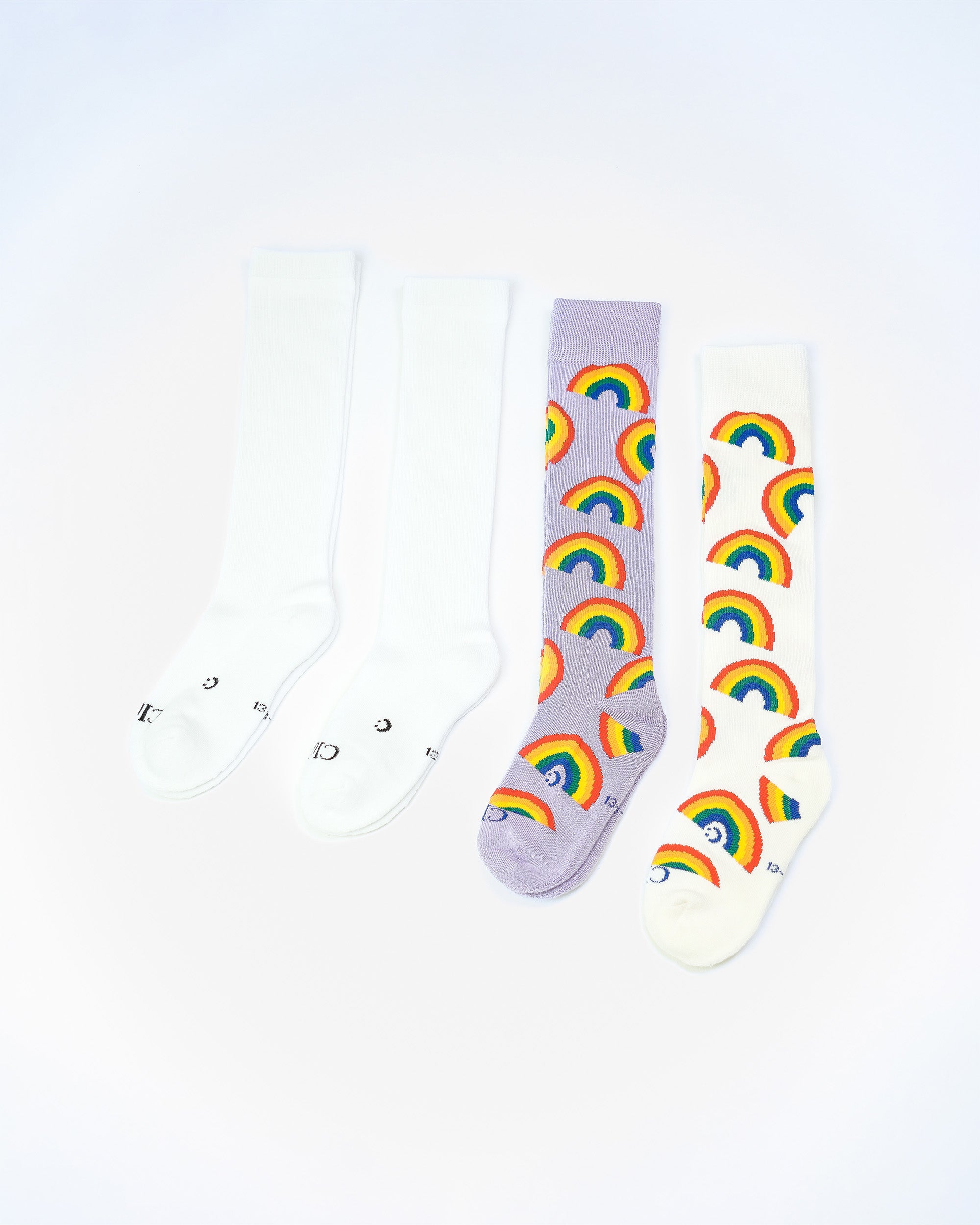 1x Everyday Knee-High Sock (Kids) - White Rainbow