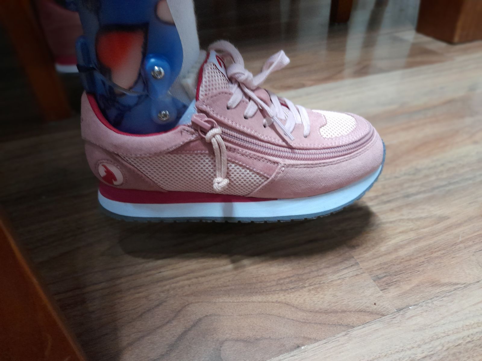 We’ve had these shoes for a week now, and I am very impressed with them. My daughter has to wear a dictus band and orthotics in her shoe and the easy zip opening, makes it very functional and simple to get her foot in an out with too much fuss. Please excuse the wear and tear on the shoes in the photo as I promise they do come Brand-new looking, my daughter is just hard wearing on shoes and they look a bit rough after a week.