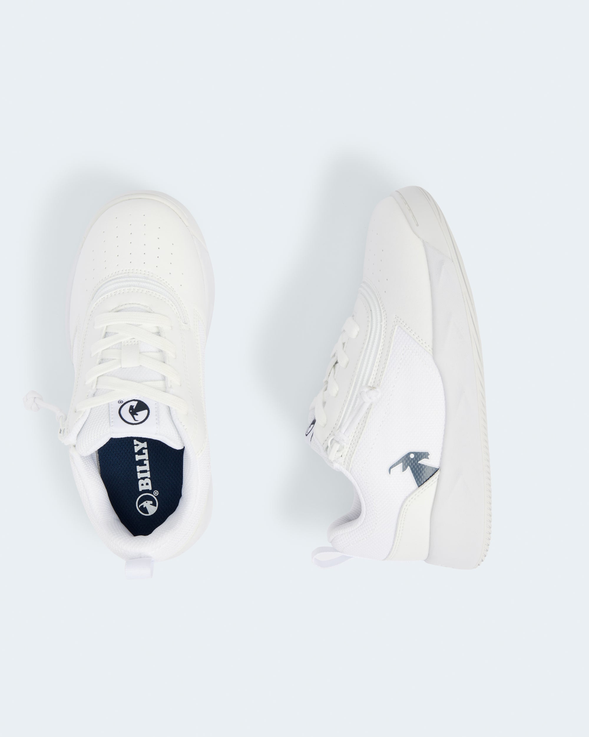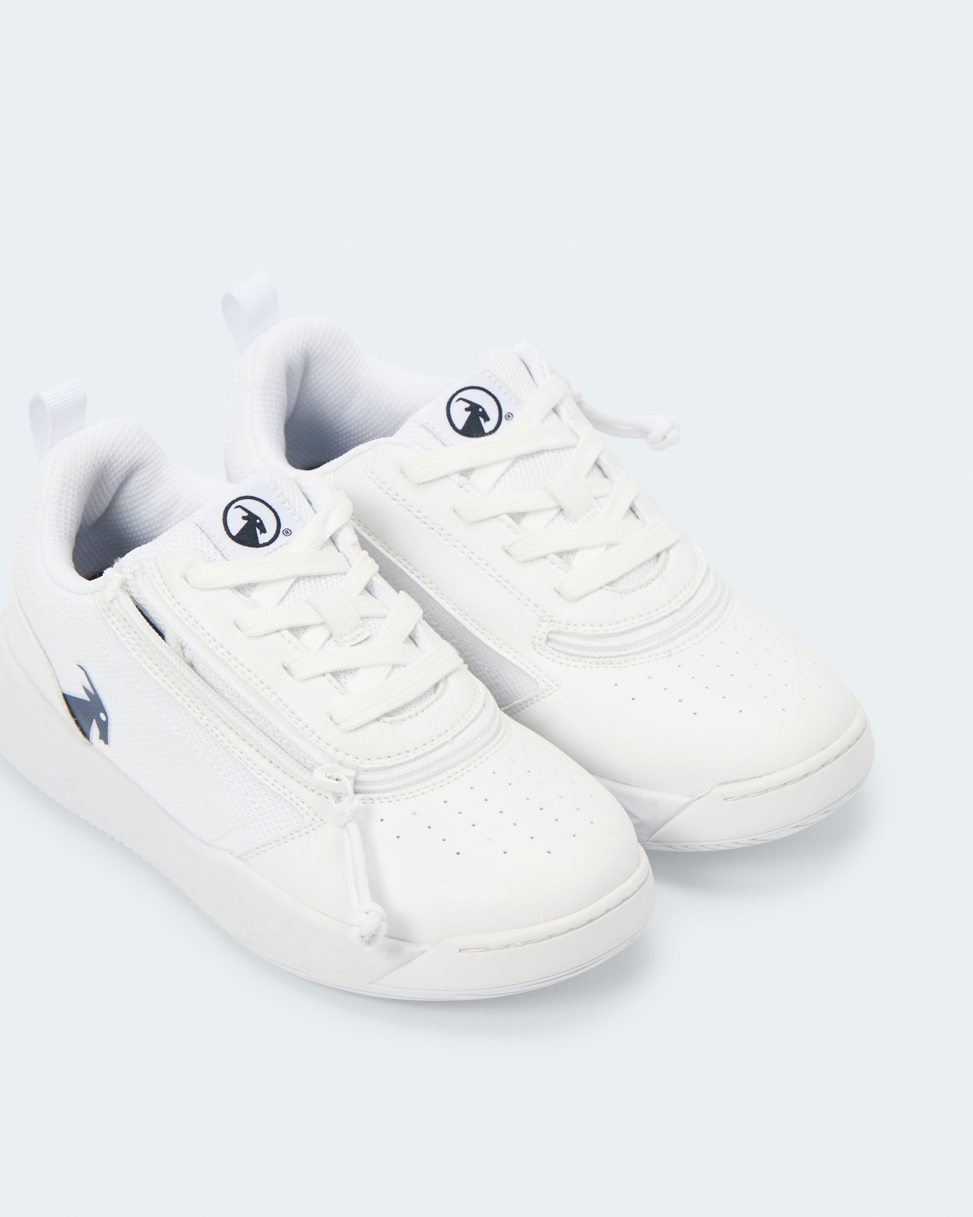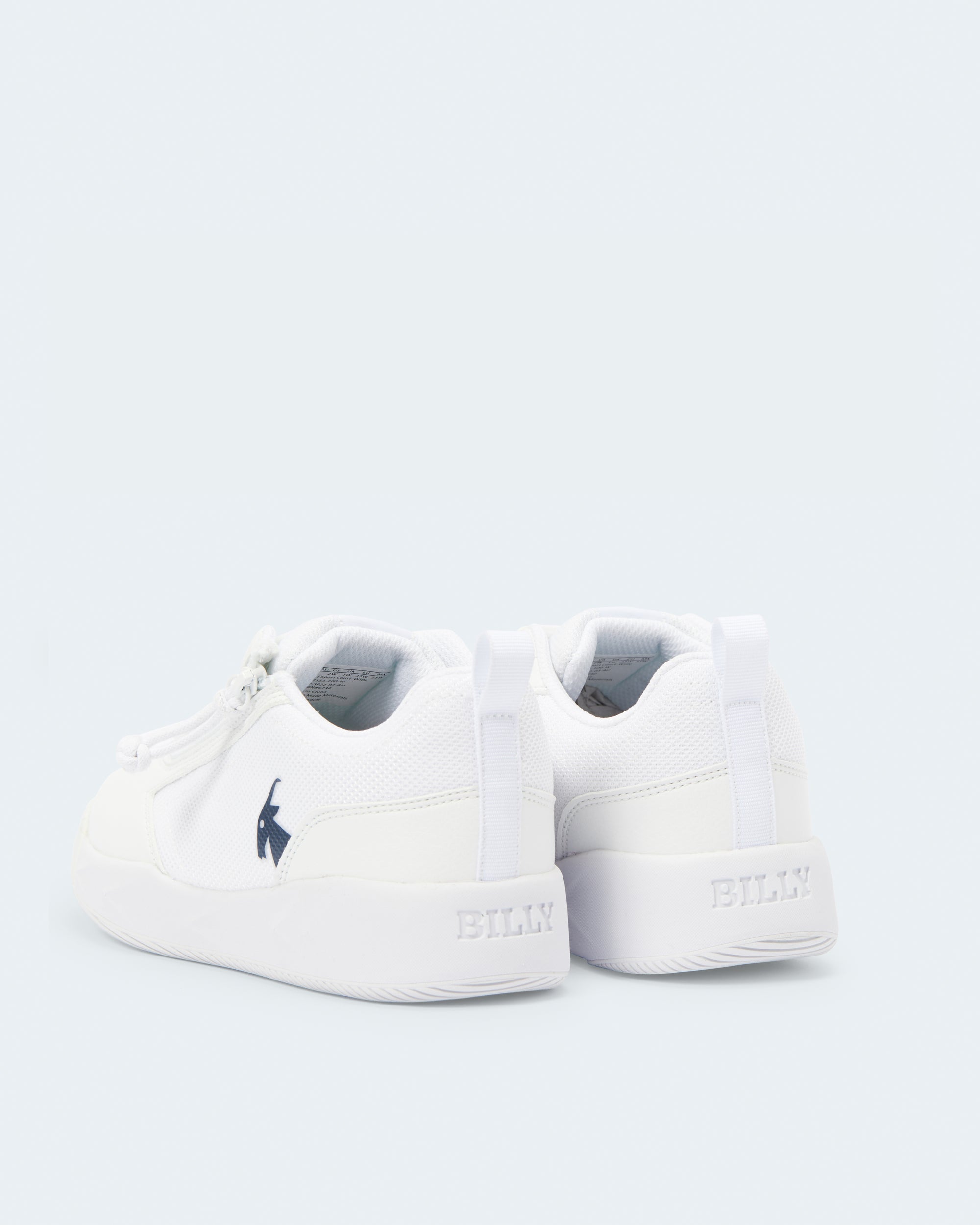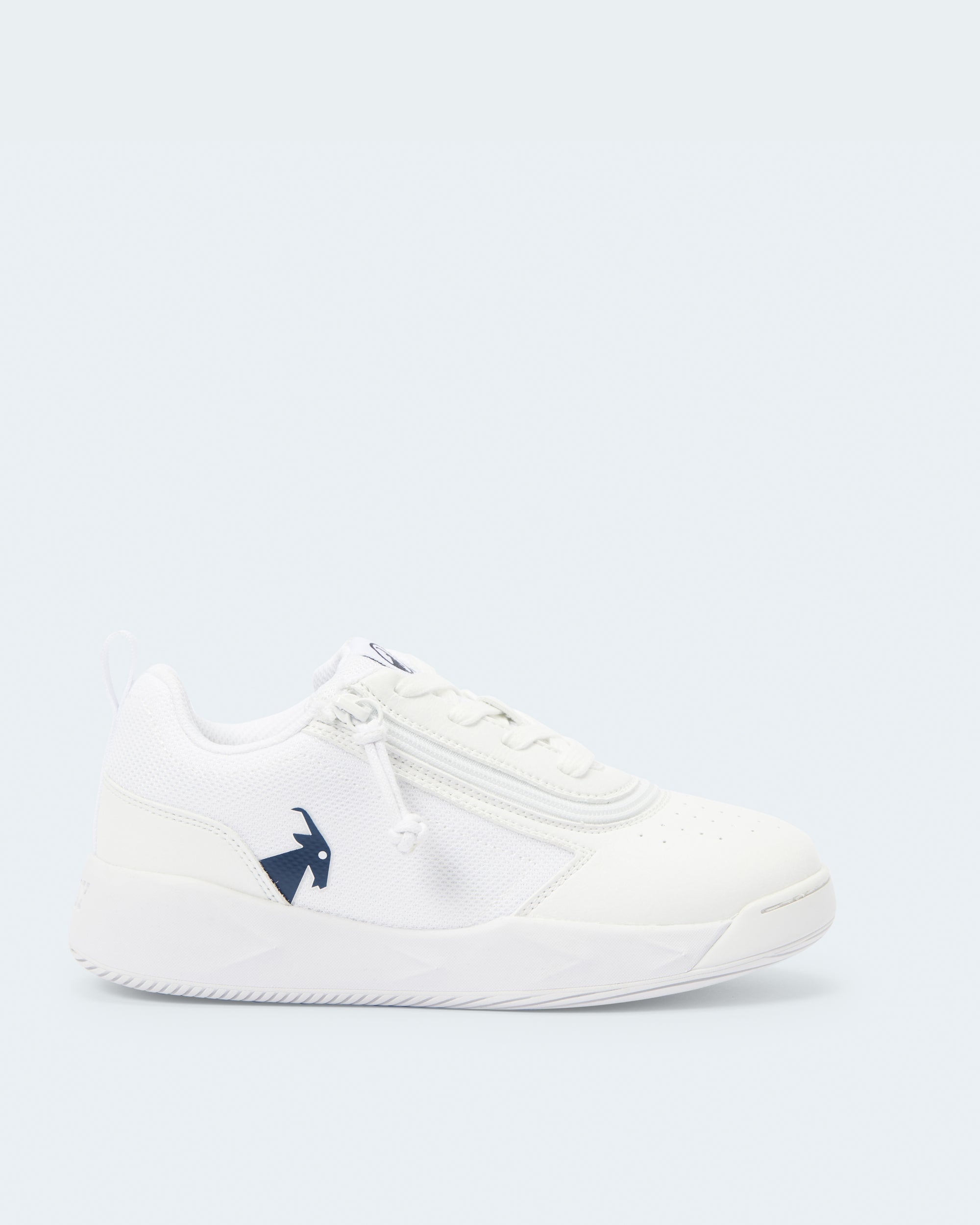 The White/Navy BILLY Sport Court Athletic Sneakers provide that little something your kiddo may be looking for both on and off the court. The faux leather upper gives shoe durability. The padded inner lining gives added comfort. And the short-wrap zipper configuration makes each shoe easy to put on and take off.?ÿ?ÿEnjoy!