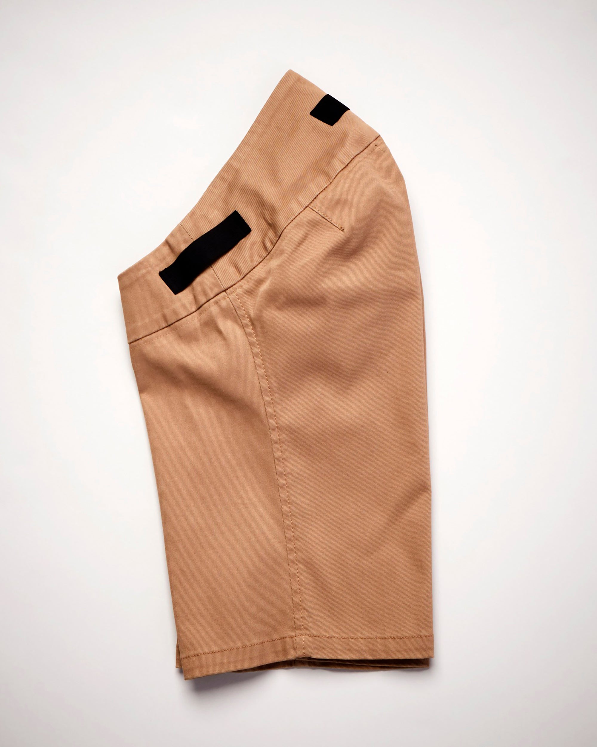 The cut of the shorts provides a natural fit for sitting, and a full elastic yoga waistband and pull tabs make for ease in dress and wearing.