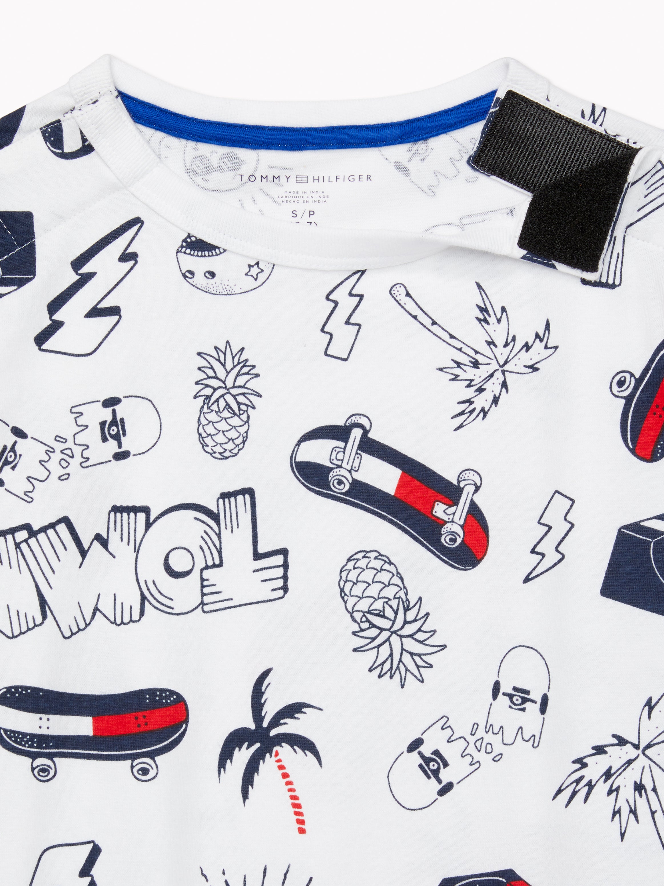 Elevate your style with the Tommy Hilfiger Skater Tee. Spread some good energy and positivi-tee in this fun Tommy tee. Designed for ease and accessibility, this sweatshirt features a wide neck opening with concealed Velcro closures, making it a breeze to put on. Part of our Adaptive Collection, designed for ease of dressing in classic Tommy style.