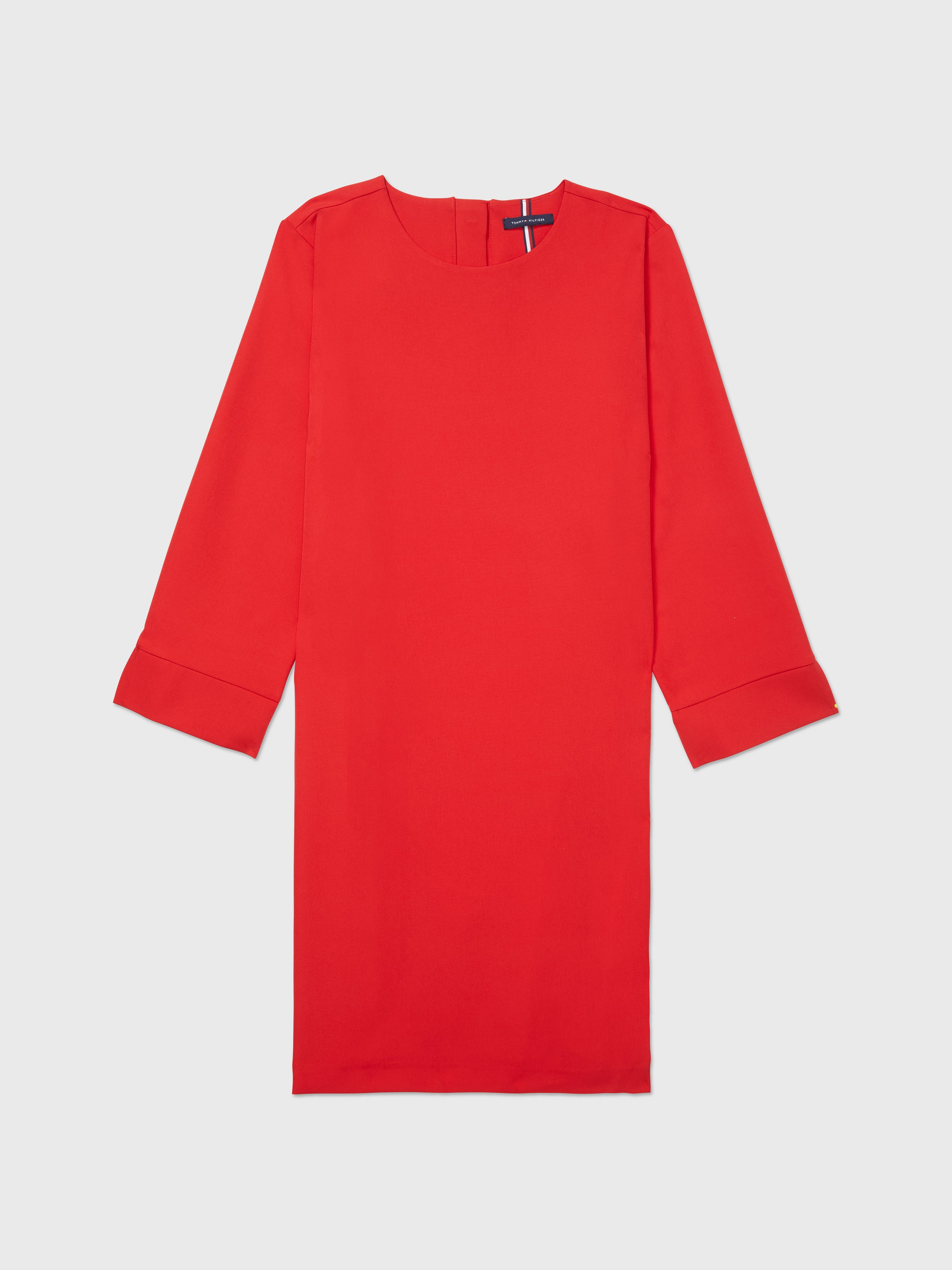 Elevate your style and convenience with the Tommy Hilfiger Logo Stripe Shift Dress. Tailored in a universally flattering silhouette, it's the ideal desk to diner dynamo with the switch of a heel and addition (or subtraction) of a blazer. Designed for easy dressing, this dress features magnetic buttons at the back of the neckline, eliminating the fuss of traditional buttons. Pure and simple, the perfect shift dress, accented with our logo stripes.